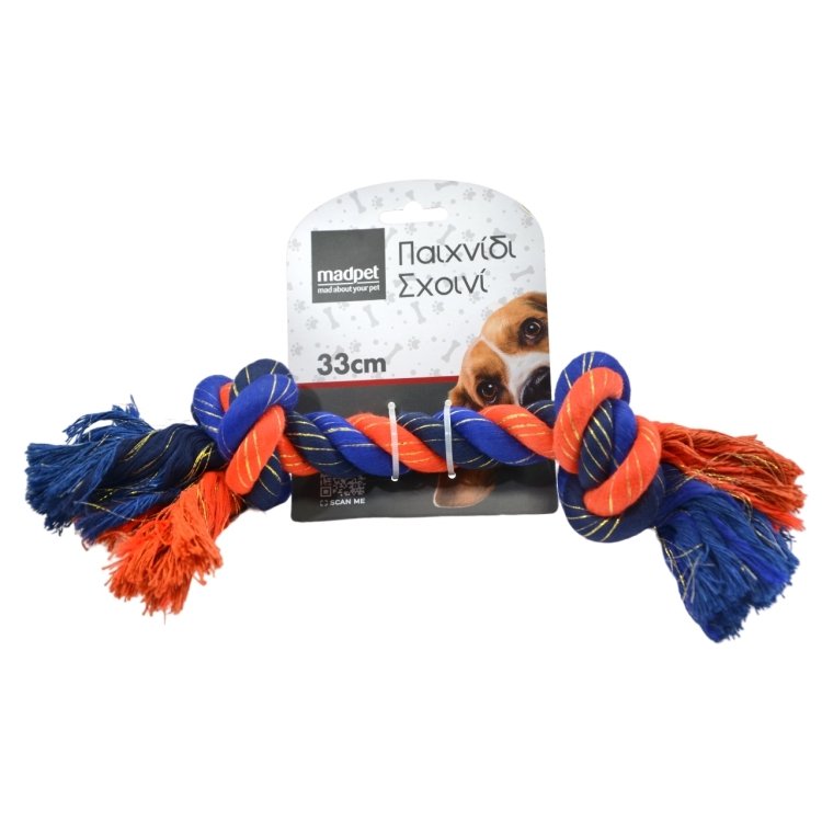 Ανθεκτικό σχοινί-παιχνίδι για σκύλους, ιδανικό για μάσημα και παιχνίδι τραβήγματος. Βοηθά στον καθαρισμό των δοντιών και στη μείωση της πλήξης. Κατάλληλο για καθημερινή απασχόληση και εκτόνωση.