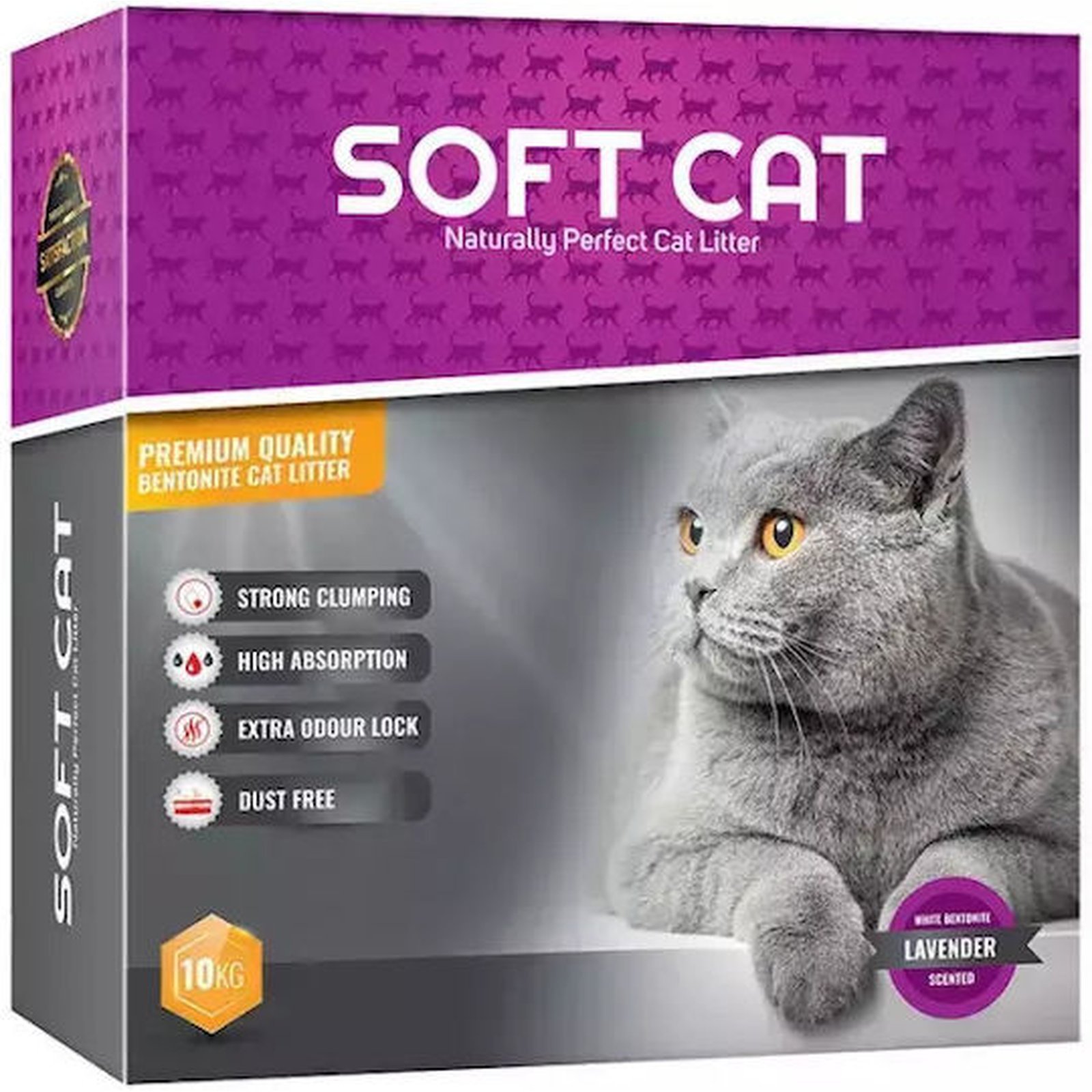 Soft Cat Box Cat Litter is a hygienic bentonite litter with a lavender scent, suitable for all cats.